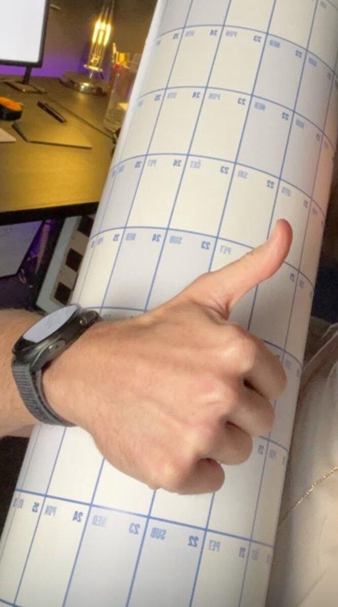 Inaće sam sama lijepila papire i crtala tablice po zidu jer nisam mogla naći normalan veliki kalendar. 😅 Vidi se na slici moja stara 'instalacija' desno i novi ieBENO lijevo. Napokon se neko sjetio napraviti to profesionalno, a ne kao moj likovni iz osnovne hah!