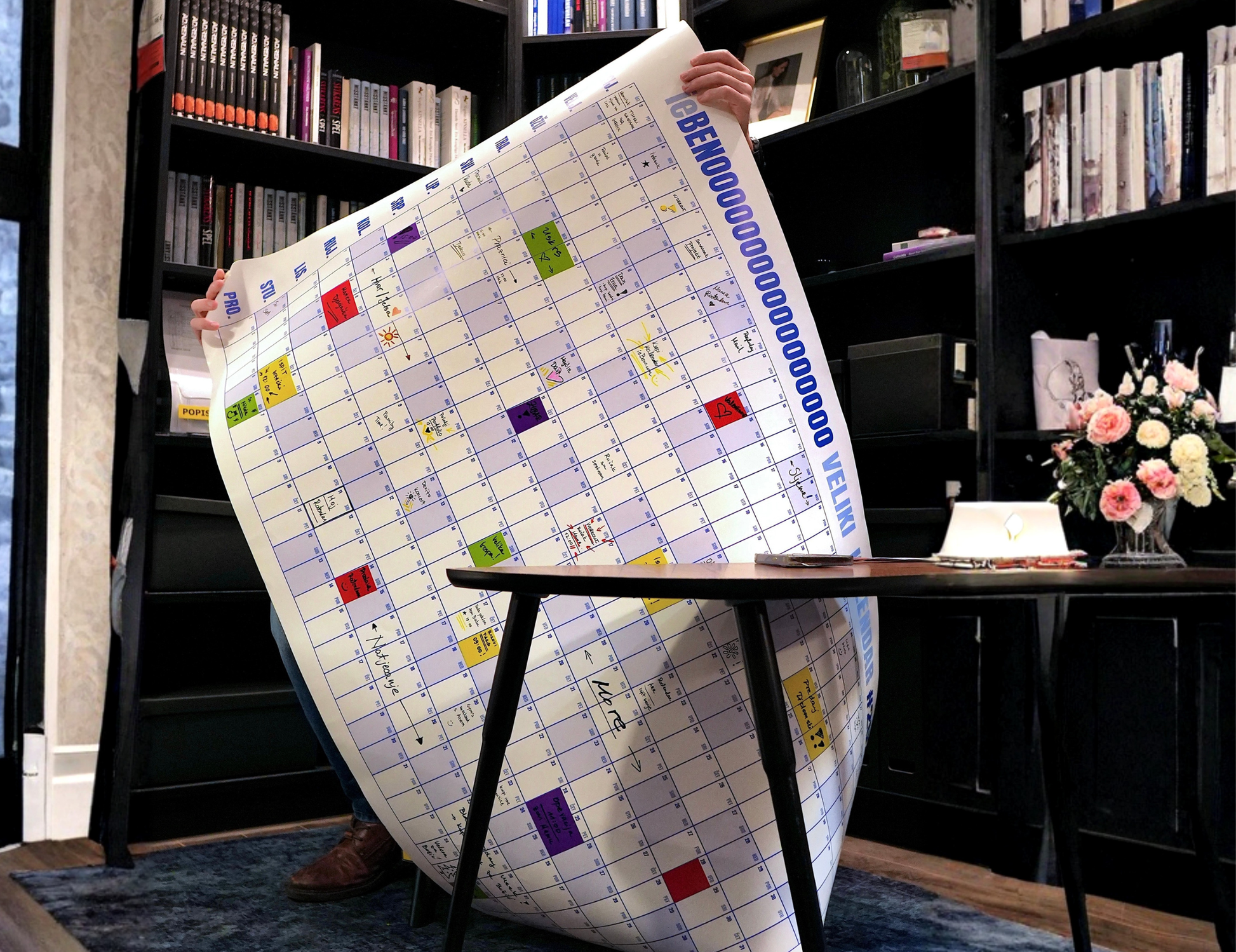 Ne, tekst se ne može brisati s poster papira. Ako želiš promijeniti nešto što si već upisao, koristi bijele ili obojene stickere koji dolaze s kalendarom i jednostavno prelijepi polje koje mijenjaš.